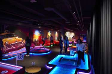 Putt EVO expands the genre of indoor minigolf attractions and take the crowd favourite to a new level. The special and innovative feature of Putt EVO is not only the modern design of the minigolf courses, but above all the various built in lightning effects and features.