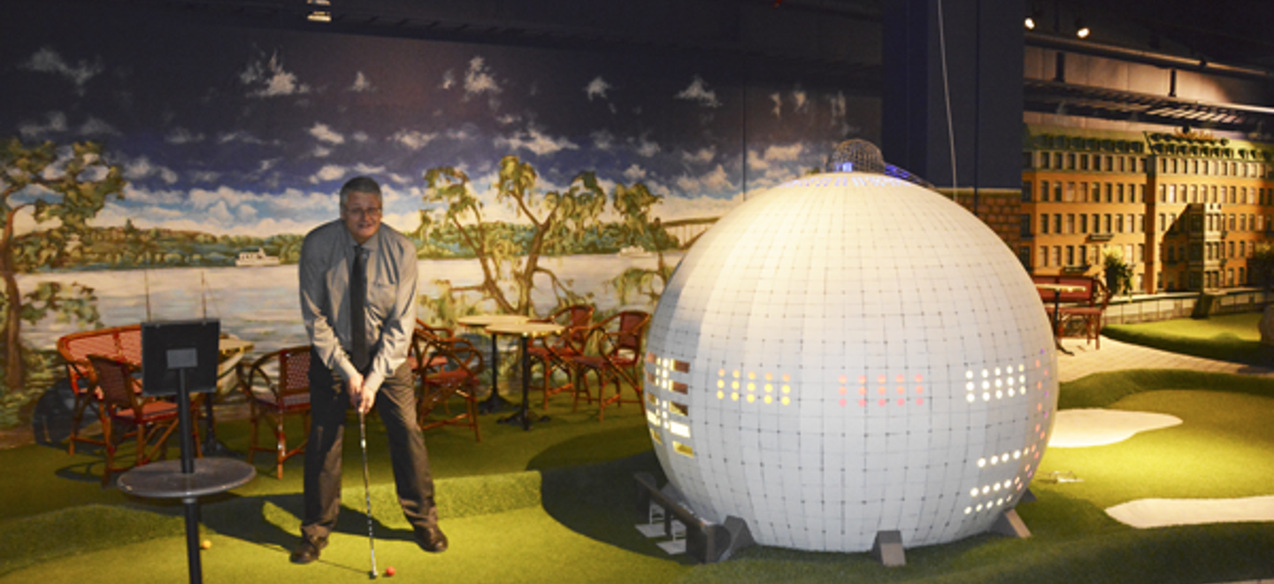 Vår bana består av 12 hål och har ett Stockholmstema. Här får man en rundvandring i Stockholm samtidigt som man spelar Äventyrsgolf. Varje hål representerar någon känd byggnad eller plats i Stockholm. Äventyrsgolfen är långt mer än traditionell minigolf!