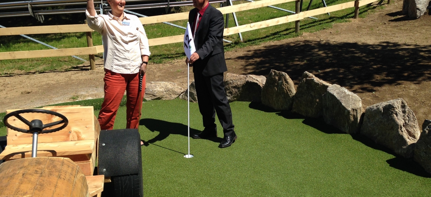 Den ny äventyrsgolfbanan invigdes en solig eftermiddag, i närvaro av den lokala präst-, journalist- och politikerkåren samt övriga gäster, vänner och familjemedlemmar.