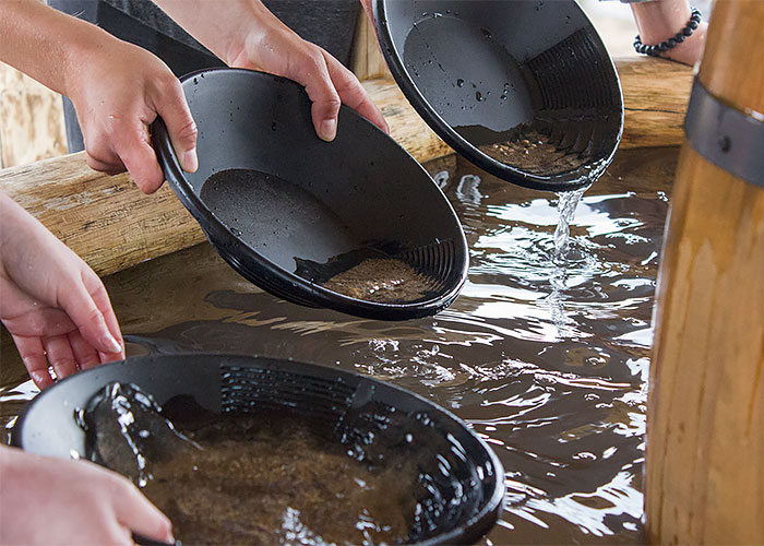 I utkanten av anläggningen har besökarna möjliget att få testa vaska riktigt guld.