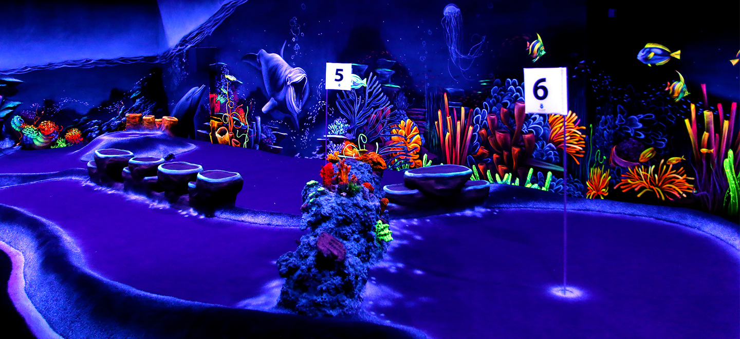 Hål 5-8 tar oss långt ner under ytan. Fördjupa dig i korallernas vackra värd och se upp för bläckfisken som sträcker sina långa tentakler över fairwayen. På väggarna finns färgsprakande fiskar och koraller.